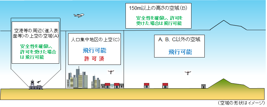 ※撮影可能エリアは航空法の包括申請による許可済エリア(C)及び規制区域以外のエリアが対象となります。